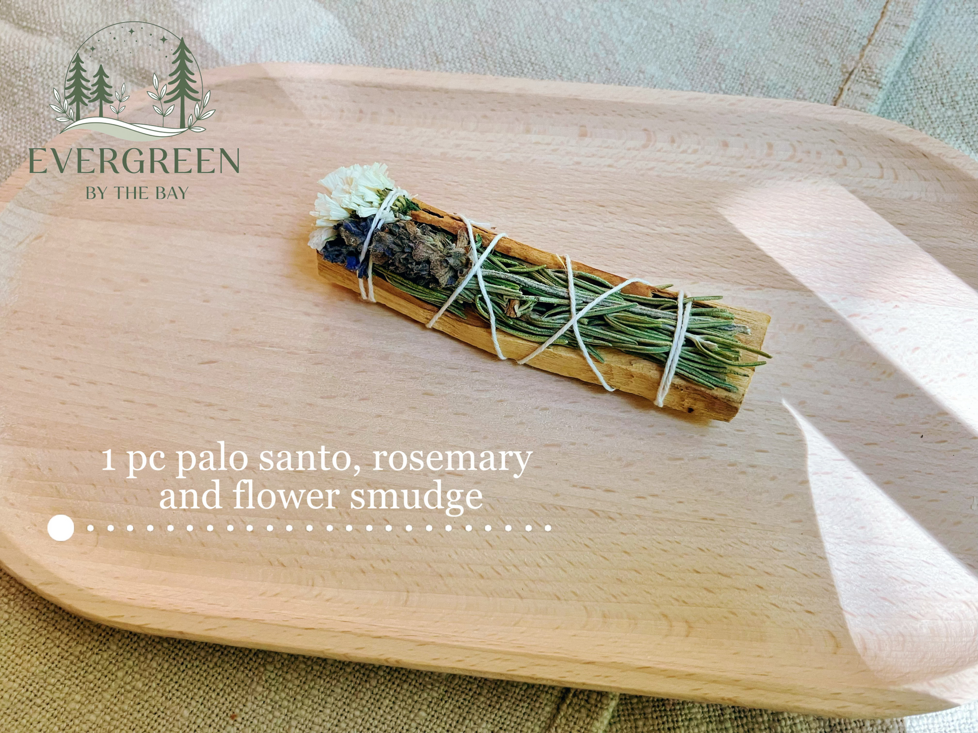 - 1 Palo Santo + Rosemary + Floral Herb Smudge: a fragrant cleansing bundle to clear stagnant energy and invite renewal.