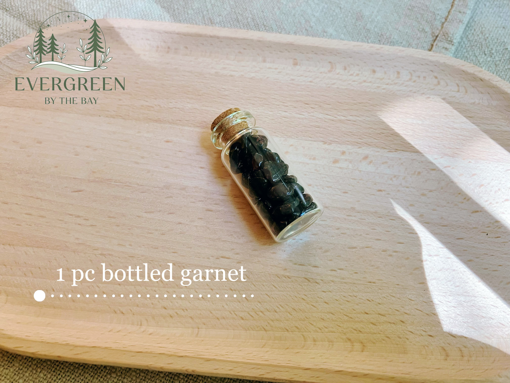 - 1 Small Bottle of Garnet Chips: vibrant energy stones that inspire passion, courage, and vitality.